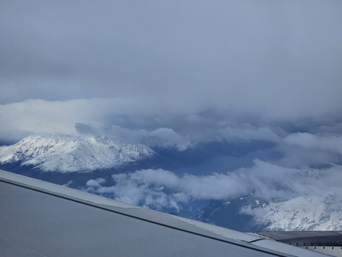 We'd already heard that New Zealand's South Island was the more beautiful of the two, but what took me by surprise was seeing nothing but snow-capped mountains beneath us as we looked down from the aeroplane. After a 1 hour and 20 minute flight, we landed in Queenstown too late for breakfast but not late enough for lunch. As we walked to arrivals, we were surprised by a busy airport, a stark contrast to the near-deserted Wellington airport we'd departed from that morning.