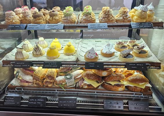 It was still raining, so we sought shelter in The Boat Shed Bakery. We bought a simple but delicious pesto-feta-dukka danish, while the fam - that's the term the grown-ups in our two-family-group use to refer to each other - ordered a passionfruit and mango mousse cake. We ate our snack and treat standing under a garden umbrella outside the bakery as it was only a small shop with limited space inside. We ate with a view of the mountains across the lake, largely shielded by fog but still showing the snow that covered the otherwise dark peaks. Five minutes... then ten... a few pictures of the boats lined up on the pier... twenty minutes... my parents and I returned to the car because just standing outside in the cold and staring at the mountains got boring... twenty five minutes... we were scrolling in the car, each to our own, and chatting... the fam joined us... thirty minutes... thirty five... it was finally our booking time!