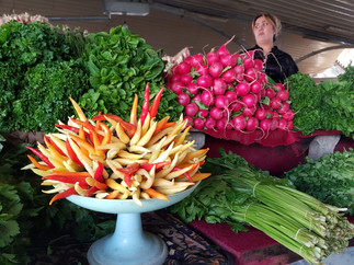 When we finally set foot inside the huge domed market, I let out a gasp. It was humongous! And it was teeming with both sellers and customers. We saw the green herbs and vegetable stalls, the array of colourful spices displayed in plastic boxes, the heaped mountain tea leaves, all sorts of dried fruits and nuts, including dried Cantaloupe (they were called the Uzbek melon as they were longer and of a brighter yellow shade compared to a regular cantaloupe), and tons of lemons and chocolate persimmons.