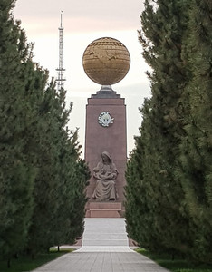When we looked straight ahead from the central arch, we could see a pathway flanked by trees on both sides. This pathway led to the second monument, the Monument of Independence. It was characterized by a tall, brown pedestal with a golden globe placed on top of it. The map of Uzbekistan was etched onto the globe to show the existence of this country.