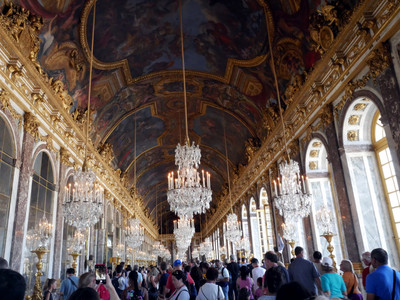 We were left spellbound in the Hall of Mirrors. Mirrors were very, very expensive in the 17th century, so 17 arches, each containing 21 mirrors for a total of 357 mirrors, speak volumes about the wealth and power of Versailles.